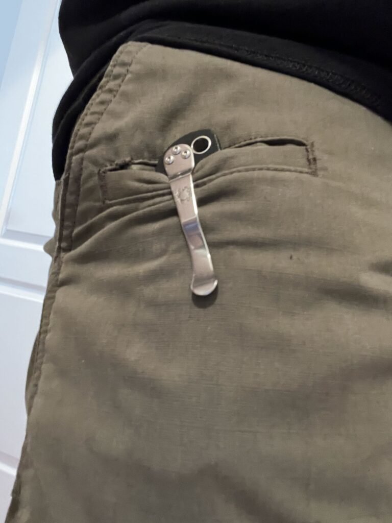 The clip isn’t exactly deep carry, no matter what carry orientation it is in, there is a portion of the knife that sticks out past your pocket, whereas other clips are true deep carry. This can be remedied by purchasing third party clips if it is a deal breaker for you.